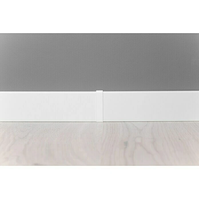 Diese Übergangskappe aus Kunststoff passt perfekt zu unserer Sockelleiste mit Dekorfolie im Farbton ähnlich RAL 9003. Das Zwischenstück erspart das Sauberkappen der Leistenenden an den Stoßstellen und bildet einen makellosen Übergang.
