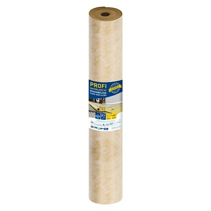 Die Profi Click-Vinyl & SPC Dämmunterlage eignet sich bestens für den akustischen Einsatz unter schwimmend verlegten Vinyl- und SPC-Bodenbelägen. Das Dämmmaterial bietet maximale Produktsicherheit für private und gewerbliche Räume durch die integrierte Dampfbremse. Dank extrem geringen Wärmedurchlasswiderstand ist die Profi Click-Vinyl & SPC Dämmunterlage auch optimal für Fußbodenheizsysteme einsetzbar. Zudem erhöht sich die Umweltbilanz dieser professionellen Vinylunterlage durch die Verwendung natürlicher Rohstoffe, das Produkt ist daher sehr emissionsarm.