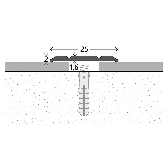 Das LOGOCLIC Übergangsprofil eignet sich perfekt zum Überdecken der Nahtstellen zwischen textilen oder elastischen, gleich hohen Bodenbelägen. Seinen Anwendungsbereich findet das Aluminiumprofil beispielsweise an Türübergängen. Die mittig versenkt gebohrten Schraublöcher ermöglichen eine unkomplizierte Befestigung.
