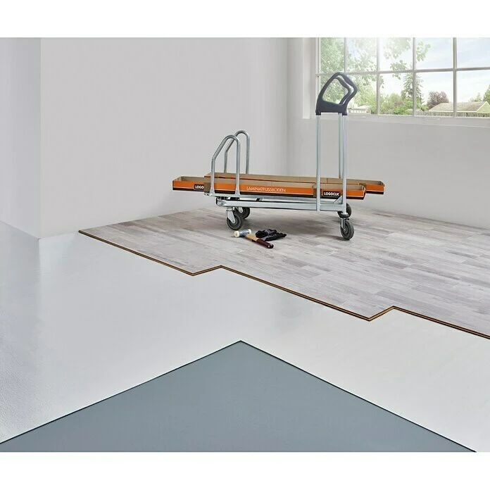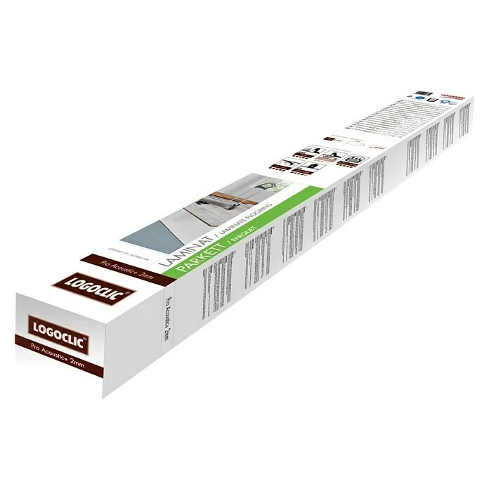 Die LOGOCLIC Dämmunterlage Pro Acoustic+ ist eine High-Tech-Akustikmatte aus hochveredeltem Polyurethanschaum mit Mineralsandgemisch inklusive Alu-Beschichtung als Feuchtigkeitsbremse. Sie verfügt über eine hervorragende Gehschallverbesserung von ca. 46,8 %, welche sich auf die Geräusche bezieht, die innerhalb des Raumes vernommen werden. Der unangenehme Klack-Klack-Effekt wird dadurch stark reduziert. Die Unterlage mit integrierter Dampfbremse ist bestens für Fußbodenheizung geeignet und hat einen extrem geringen Wärmedurchlasswiderstand.