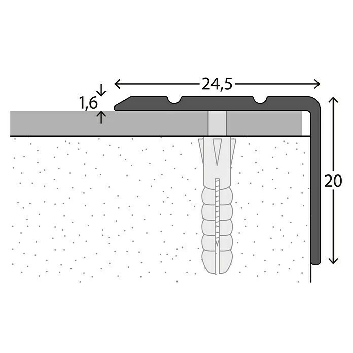 Das LOGOCLIC Winkelprofil ist ideal als kleiner Treppenwinkel, Türschwellenprofil oder Abschluss an Podesten geeignet. Es schützt die Kanten des Bodenbelags dauerhaft und ist dank versenkter Schraublöcher in kürzester Zeit sicher montiert.