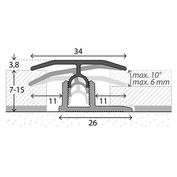 Das MyStyle Universalprofil ist für die Verlegung von Laminatböden mit einer Belagstärke von 12 – 17,5 mm geeignet. Verdeckt befestigt bietet es eine perfekte Optik ohne Schraublöcher. Die flache Oberfläche ohne Zierrillen sorgt für zeitlose Eleganz. Die Montage ist besonders schnell und einfach. Zunächst wird das Basisprofil mit Montage- oder einem Zwei-Komponenten-Kleber auf dem Untergrund verklebt. Alternativ kann das Basisprofil auch verschraubt werden. Mit dem bogenverzahnten Gelenksteg rastet das Oberprofil im Basisprofil ein und passt sich automatisch dem Bodenbelag an – variabel in Höhe und Neigung. Auch bei starken Niveauunterschieden liegt das Profil an beiden Seiten dicht an. Gleichzeitig erlaubt die Bogenverzahnung die problemlose Demontage. Das Oberprofil kann bei Bedarf gelöst und anschließend wieder im Basisprofil verankert werden. Die Profile wurden vom deutschen TÜV auf eine Punktbelastbarkeit von 1,5 Tonnen getestet. Hinweis: Passender Klebstoff oder Montagematerial ist separat zu erwerben.