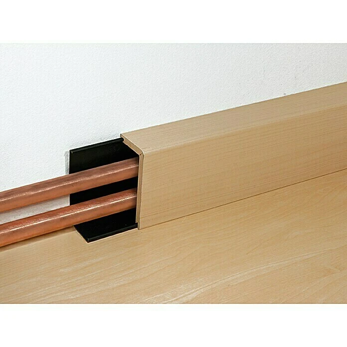 Die Rohrabdeckleiste von Profiles and more ist der ideale Partner zum Abdecken von Heizungsrohren im Bereich zwischen Wand und Boden. Das Trägermaterial MDF (Mitteldichte Faserplatte) ist bestens dazu geeignet, senkrechte Unregelmäßigkeiten auszugleichen. Durch das praktische Befestigungssystem ist eine mehrmalige Montage und Demontage der Leiste möglich.