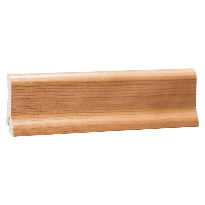 Die passende Sockelleiste für alle Liebhaber von Kirschbaumholz: Dieses geschwungene Modell bildet das i-Tüpfelchen für alle Einrichtungsstile, bei denen Wert auf eine besonders elegante Möblierung gelegt wurde. Ein massiver Fichtenholzkern wurde hier mit echtem, naturlackiertem Kirschbaumholz furniert. Das Ergebnis ist eine edle Optik, verbunden mit äußerst langlebiger Premiumqualität. Auf der Rückseite der Leiste ist eine Clip-Nut für die Montage vorgesehen.