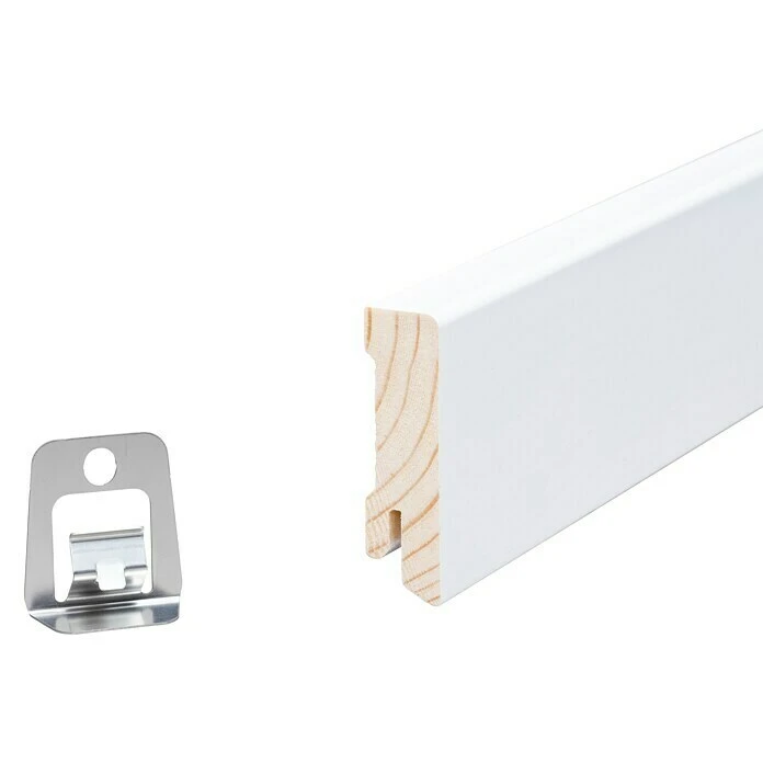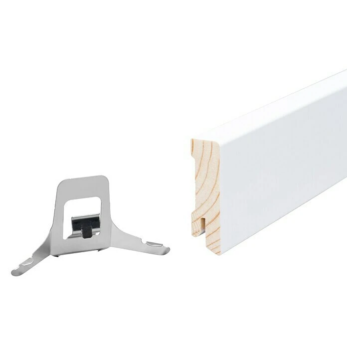 Diese Sockelleiste aus keilgezinktem, weiß lackiertem Kiefernholz ist Premiumqualität gefertigt. Ihre Wertigkeit sieht man ihr bereits auf den ersten Blick an. Durch ihr massives Holz ist sie zudem besonders robust und langlebig. Das kubische Profil erfüllt alle Ansprüche des modernen Wohndesigns und fügt sich stilvoll in jede Raumgestaltung ein. Durch die Clip-Nut der Sockelleiste ist sie obendrein im Handumdrehen montiert.